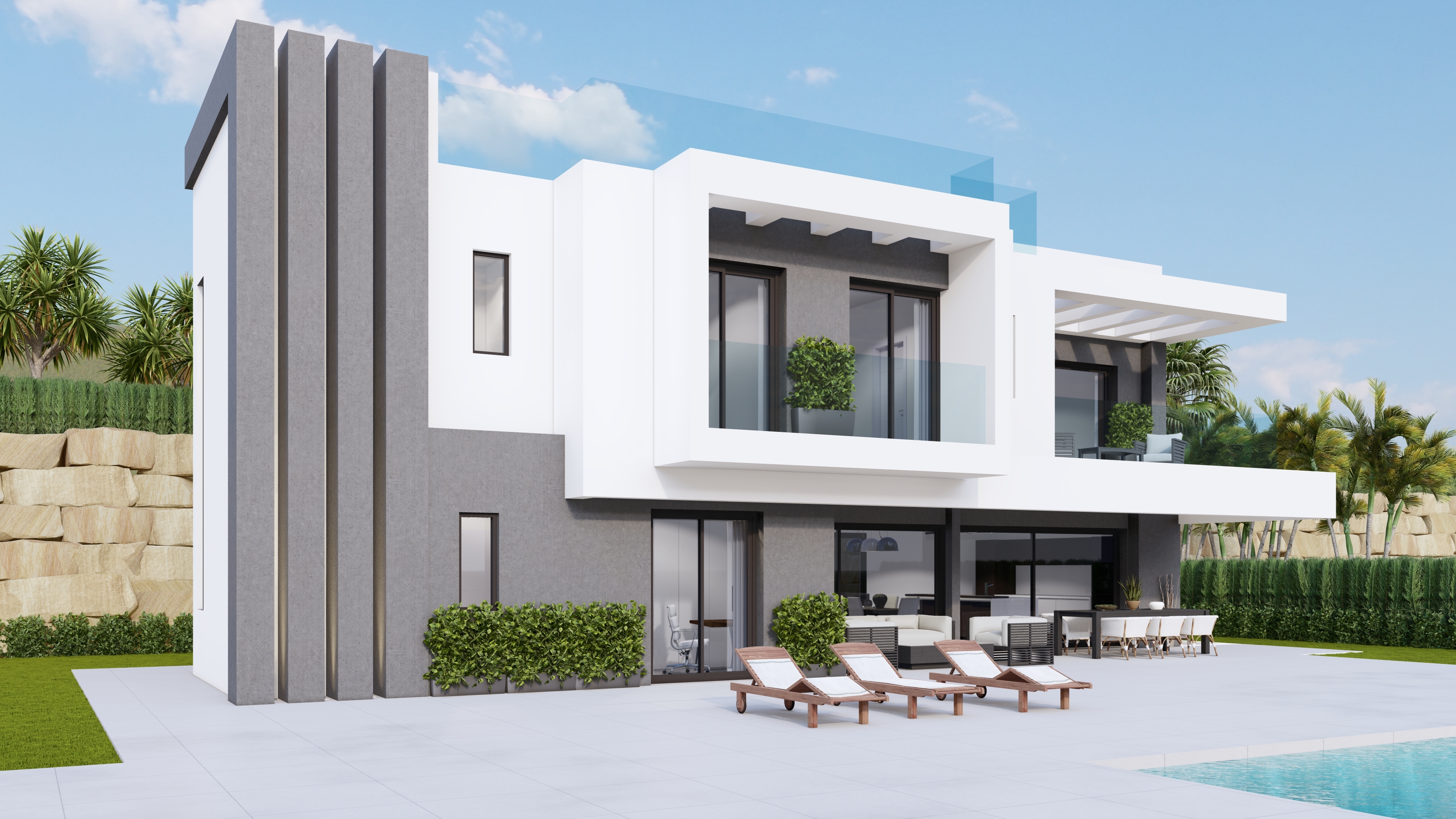 La casa está diseñada al milímetro, pensando en los detalles y en la funcionalidad que se espera de una propiedad de este nivel. Desde los balcones amplios y las ventilaciones cruzadas hasta la organización de la sala de máquinas, cada decisión se ha tomado con un objetivo claro: ofrecer una villa cómoda, eficiente y fácil de mantener.